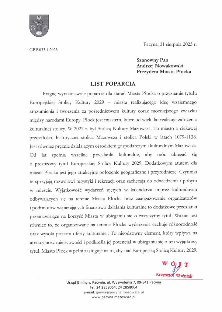 Płock wypracował znaczne i trwałe poparcie oraz zaangażowanie dla swoich ambicji. Działania samego miasta w obszarze kultury nie są jedynie inicjatywami doraźnymi, ale stanowią integralną część szeroko zakrojonej i strategicznie postrzeganej polityki rozwoju miasta.