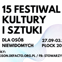 Czytaj więcej27 września rozpocznie się XV edycja Festiwalu Kultury i Sztuki dla osób niewidomych. Wydarzenie potrwa do 3 października. W ramach...