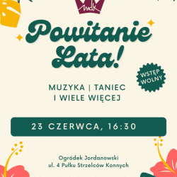 Czytaj więcejZapraszamy na coroczny piknik rodzinny „Powitanie lata”, który odbędzie się w najbliższy czwartek, 23 czerwca o godzinie 16:30 w Ogrodzie...