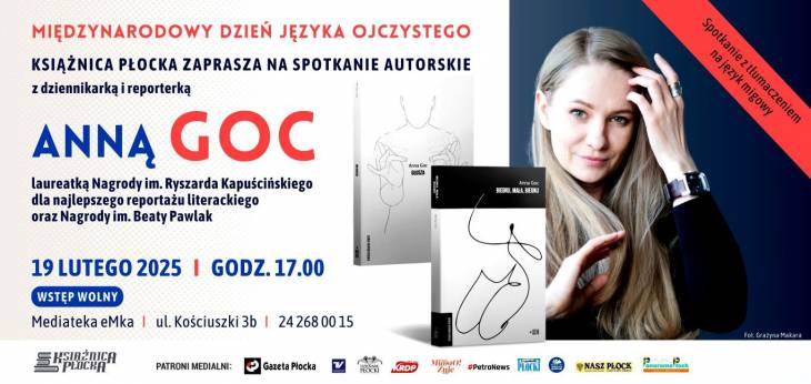 Zapraszamy do Mediateki eMka na spotkanie autorskie z Anną Goc, dziennikarką, reporterką, autorką książek „Głusza”, „Biegnij, mała, biegnij”, wywiadu-rzeki z ks. Adamem Bonieckim „Boniecki. Rozmowy o życiu”. Wydarzenie odbędzie się 19 lutego o godz. 17.00 i będzie tłumaczone na język migowy, tłumaczyć będzie Mariusz Umyszkiewicz. Spotkanie sygnowane jest Dniem Języka Ojczystego – porozmawiamy m.in. o tym, czy język polski jest językiem ojczystym dla osób niesłyszących. Porozmawiamy też o języku reportażu, okolicznościach, które sprawiają, że tekst interwencyjny staje się początkiem podróży w nieznane oraz o bohaterkach, które łączy to, że opowiadają o przełomowych momentach w swym życiu.