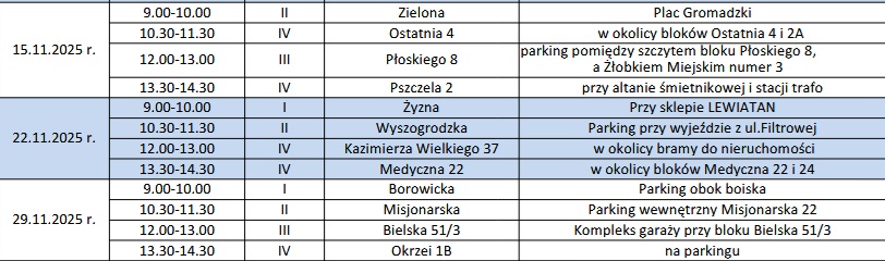 W dniach 15-29 listopada pojazd mPSZOK będzie dostępny w następujących lokalizacjach: