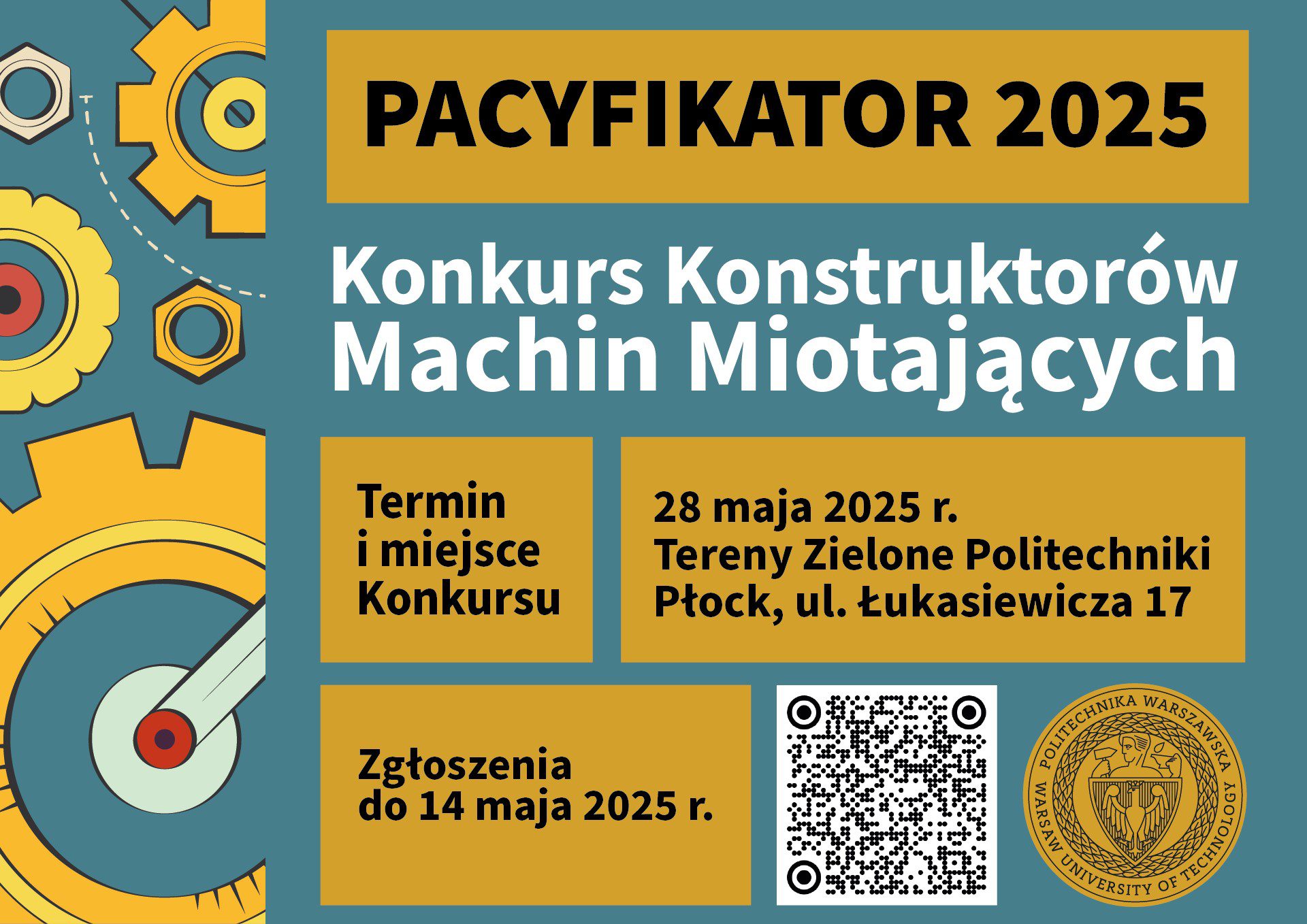 Politechnika Warszawska Filia w Płocku zaprasza do udziału w I edycji Konkursu Konstruktorów Machin Miotających „PACYFIKATOR 2025”. To rywalizacja naukowa z zakresu nauk technicznych, przeznaczona dla uczniów szkół ponadpodstawowych. Głównym celem tego projektu jest popularyzacja wiedzy i umiejętności w dziedzinie nauk technicznych (a także dobra zabawa). Organizowany jest z myślą o uczniach mających zacięcie inżynierskie, lubiących przekuwać swoją wiedzę w praktyczne konstrukcje oraz rozwiązywać w twórczy sposób napotykane problemy.