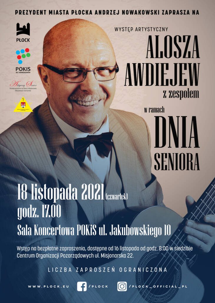 Dla płockich seniorów wystąpi Alosza Awdiejew z zespołem. Koncert odbędzie się 18 listopada 2021 roku o godzinie 17 w Płockim Ośrodku Kultury i Sztuki im. Themersonów.