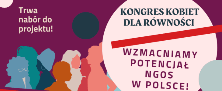 Kongres Kobiet zaprasza osoby z organizacji pozarządowych zaangażowanych na rzecz równości kobiet i mężczyzn (lub planujących taką aktywność), które działają w obszarze edukacji, włączenia społecznego, rynku pracy i zdrowia do udziału w projekcie Kongresu Kobiet. Udział w projekcie jest całkowicie bezpłatny. Oferta dotyczy osób członkowskich tych organizacji, wolontariuszy i wszelkich osób współpracujących – kobiet i mężczyzn.