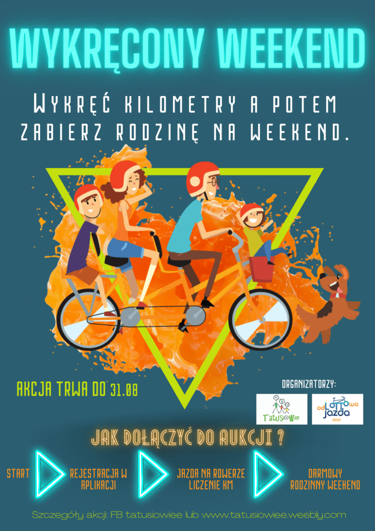 Zachęcamy, by nie kończyć na tej rywalizacji. Przed nami kolejna akcja rowerowa – Wykręcony Weekend. Stowarzyszenie Tatusiowie i odLOTTOwa jazda (program Fundacji LOTTO) proponuje aktywny wypoczynek w gronie całej rodziny i kręcenie kolejnych kilometrów. A wszystko pod hasłem: „Wykręć kilometry, a potem zabierz rodzinę na weekend”.