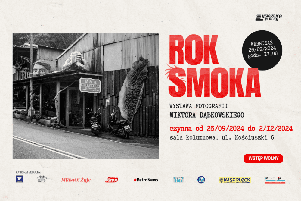 Książnica Płocka zaprasza 26 września o godz. 17.00 do sali kolumnowej przy ul. Kościuszki na otwarcie wystawy fotograficznej „Rok Smoka”. Będzie to zbiór kilkudziesięciu autorskich fotografii, które podczas swego kilkuletniego pobytu na Tajwanie wykonał Wiktor Dąbkowski.