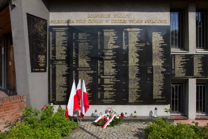 godz.11.00 – złożenie kwiatów przy tablicy upamiętniającej płockich żołnierzy poległych i pomordowanych w czasie II wojny światowej – Kościół Św. Stanisława Kostki przy al. Jachowicza