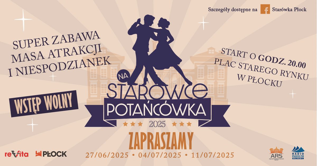 Wraz z rozpoczęciem wakacji będą kontynuowane taneczne spotkania pełne zabawy – Na Starówce Potańcówka 2025. Pierwszy wieczorek w pięknej scenerii Placu Starego Rynku, przy małej scenie już w piątek 27 czerwca 2025r. Zaczynamy o godzinie 20.