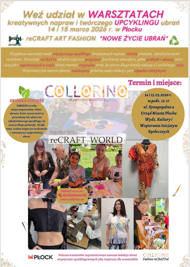 Organizatorami warsztatów są: Miasto Płock, Collorino – Nowe Życie Ubrań.