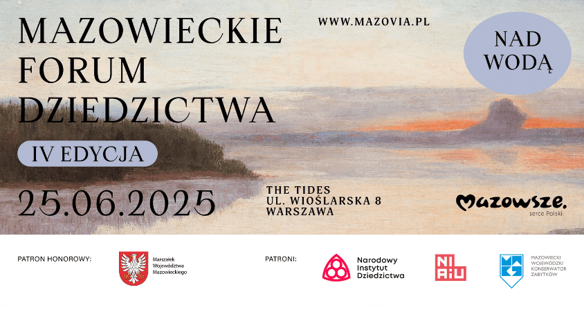 szczegóły: https://mazovia.pl/pl/szkolenia/iv-edycja-mazowieckiego-forum-dziedzictwa-nad-woda.html