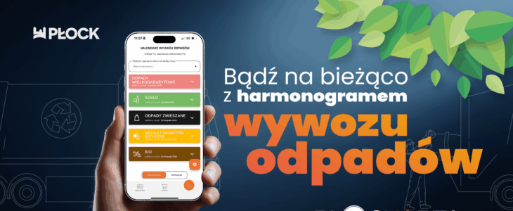 Nowa funkcjonalność w Płockiej Karcie Mieszkańca, poza prezentowaniem zasad prawidłowej segregacji, harmonogramem mobilnego PSZOK i wyszukiwarką odpadów, będzie przypominała mieszkańcom o zbliżającym się terminie odbioru odpadów.