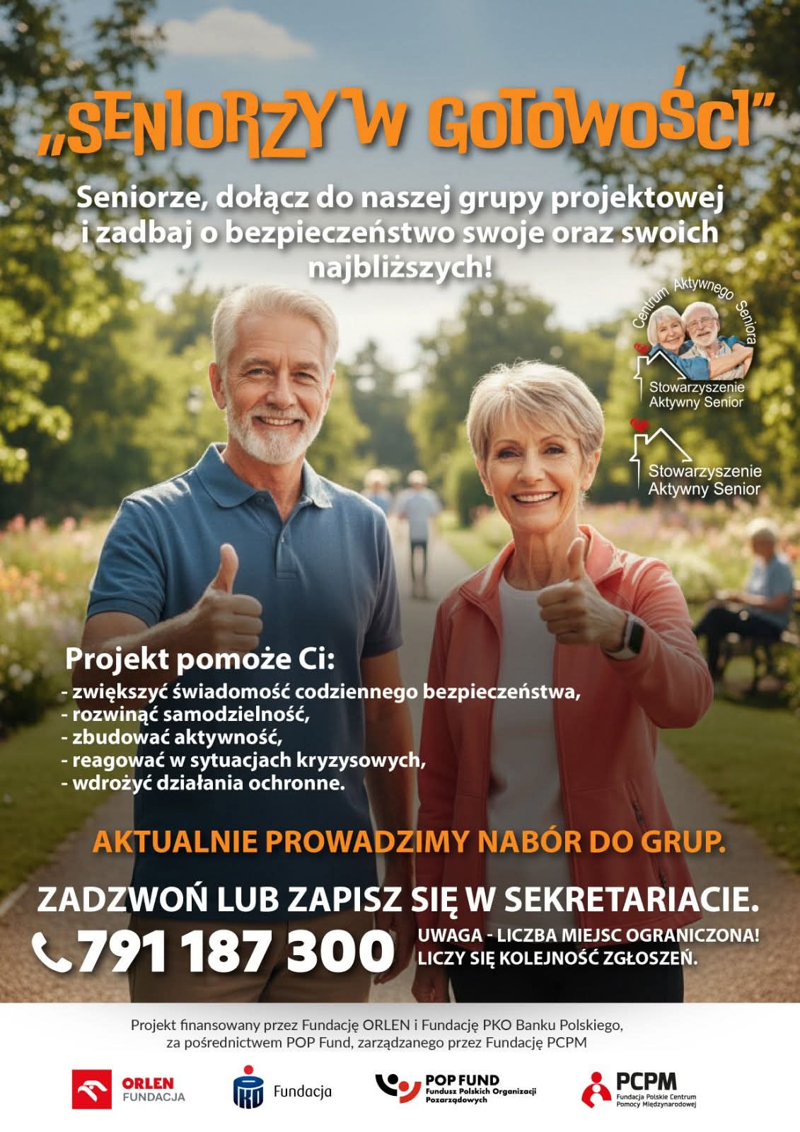 Serdecznie zapraszamy do zapisów – można zadzwonić lub zapisać się bezpośrednio w sekretariacie. Warto nie zwlekać, ponieważ liczba miejsc jest ograniczona. Dołącz do projektu „Seniorzy w gotowości” i zadbaj o swoją bezpieczną, aktywną przyszłość już dziś.