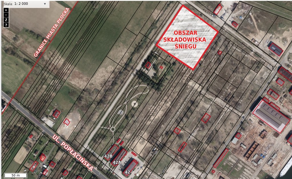 Podobnie jak w poprzednich latach, w Płocku wyznaczone zostało miejsce do składowania śniegu, pochodzącego z dachów budynków, parkingów, przejść dla pieszych oraz innych obiektów na terenie Płocka. Składowisko znajduje się przy ul. Popłacińskiej 42. Mogą z niego korzystać mieszkańcy Płocka oraz podmioty działające na jego terenie.