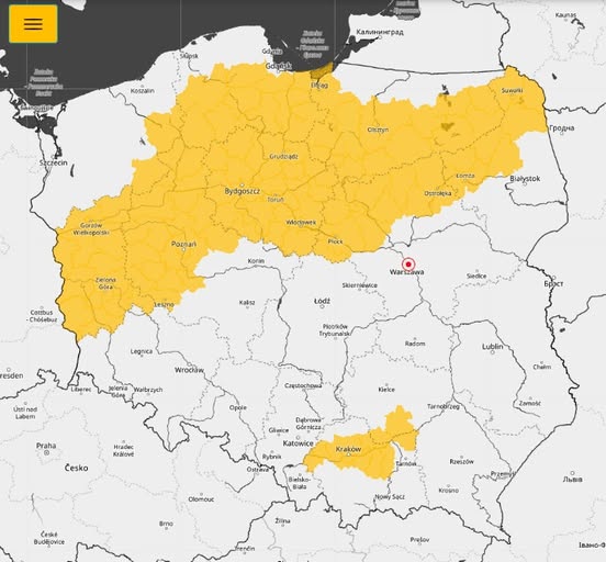 Prawdopodobieństwo wystąpienia zjawiska wynosi 70%. Apelujemy o ostrożność.