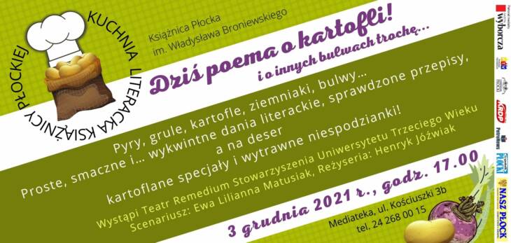 Książnica Płocka im. Władysława Broniewskiego zaprasza na Kuchnię Literacką „Dziś poema o kartofli!”. Wydarzenie odbędzie się w piątek 3 grudnia o godzinie 17 w Mediatece eMka, ul. Kościuszki 3b.