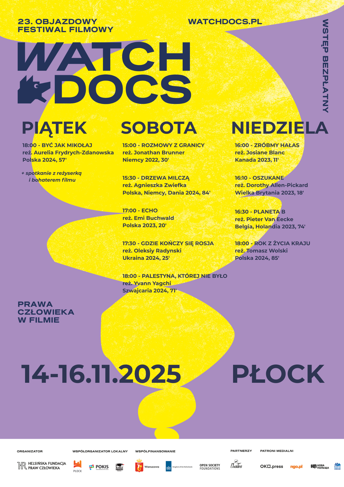 organizator: Helsińska Fundacja Praw Człowieka, współorganizator: Płocki Ośrodek Kultury i Sztuki im.Themersonów, Kino za Rogiem w Płocku