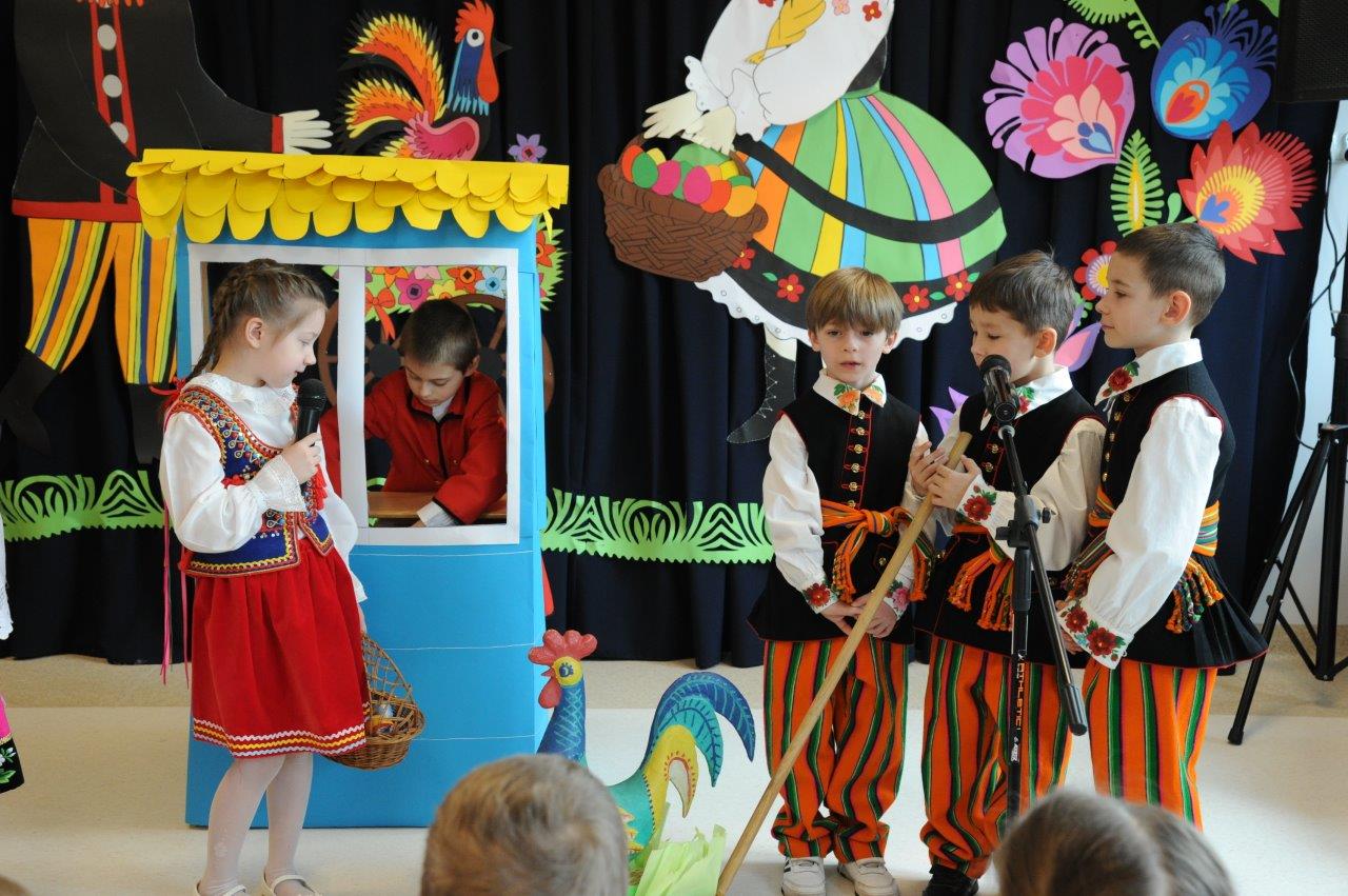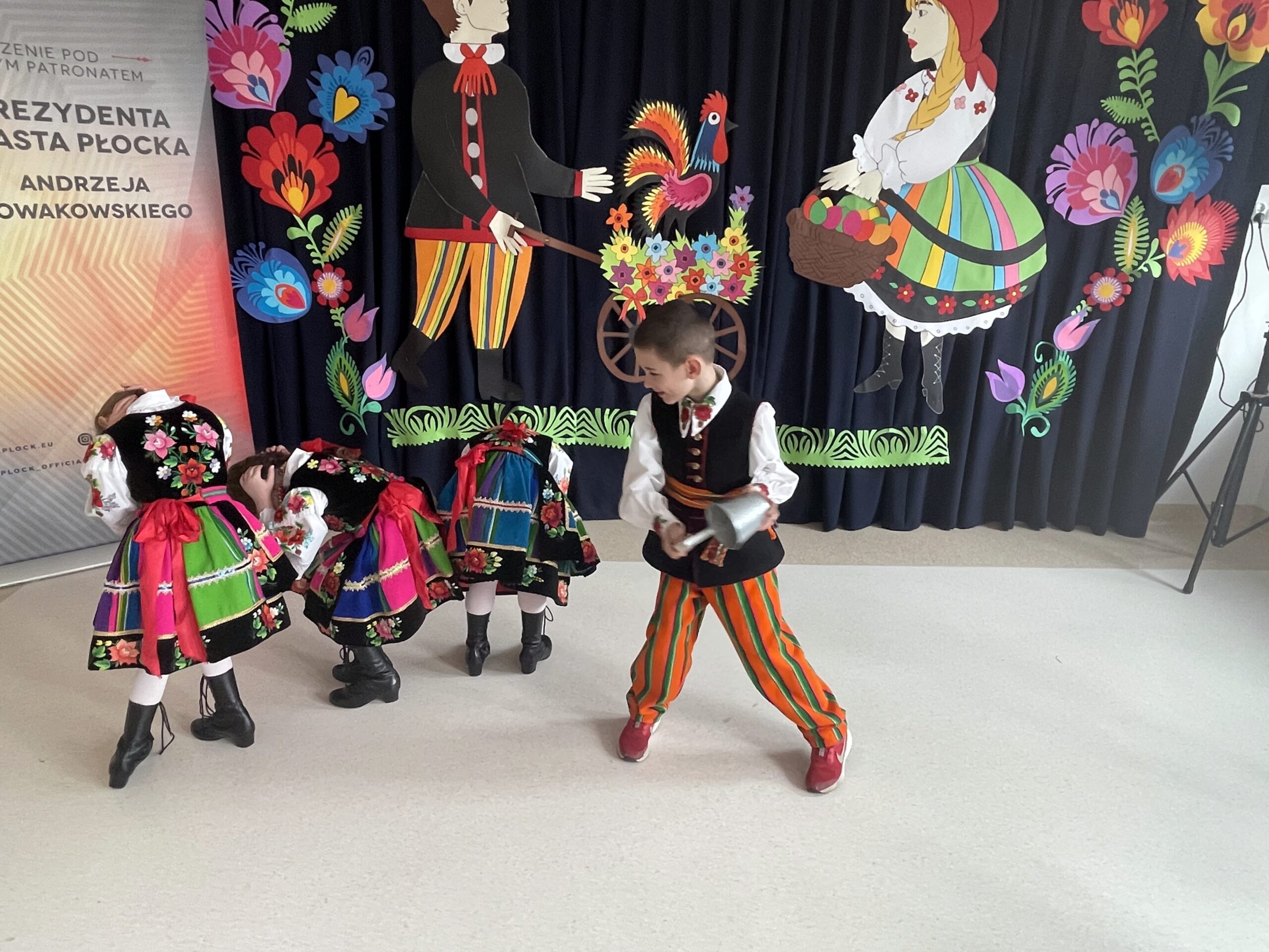 Program artystyczny zaprezentowany przez pięciolatki i sześciolatki z szóstki nawiązywał do dawnych zwyczajów i obrzędów wielkanocnych, takich jak śmigus-dyngus, chodzenie z kogucikiem czy gaikiem. Dzieci zaprezentowały krótkie scenki ludowe oraz piosenki związane z tymi tradycjami, przypominając w ten sposób o pięknie polskiego folkloru i różnorodności ludowych obrzędów.