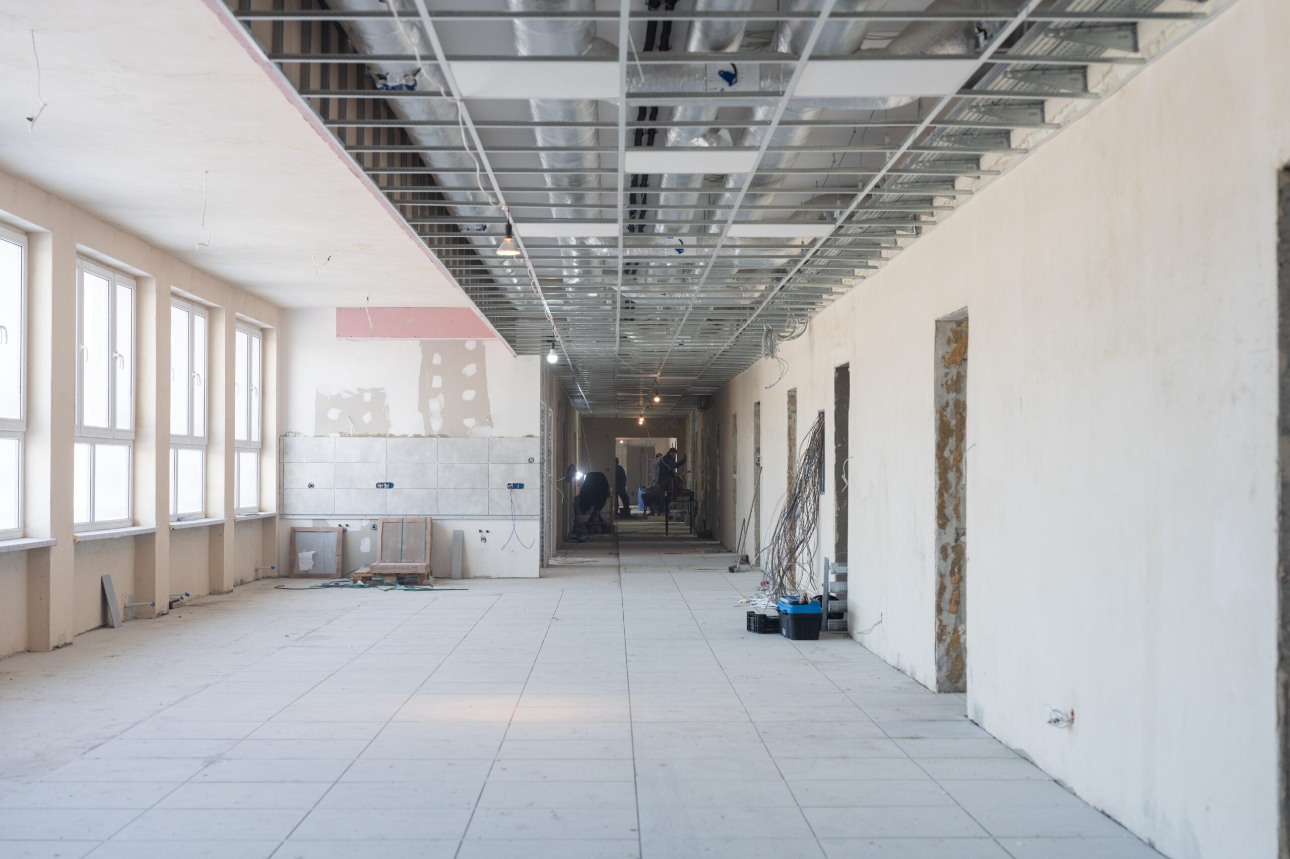 Dziś jesteśmy już na etapie prac wykończeniowych. Układamy płytki, montujemy windę osobową (na potrzeby organizacji pozarządowych, żłobek nie będzie miał do niej dostępu), montujemy klimatyzację, instalacje elektryczne i teletechniczne oraz węzeł cieplny, stawiamy ścianki działowe, sufity i wszystko szpachlujemy. Obiekt będzie gotowy w marcu tego roku.