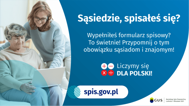 Narodowy Spis Powszechny 2021 jest niezwykle ważny dla Ciebie, Twojej rodziny i całej Twojej „małej ojczyzny”. Tę świadomość staraj się propagować wśród swoich sąsiadów: przypomnij o obowiązku spisowym i zaoferuj pomoc tym, dla których spis nie jest tak łatwy, jak dla Ciebie.