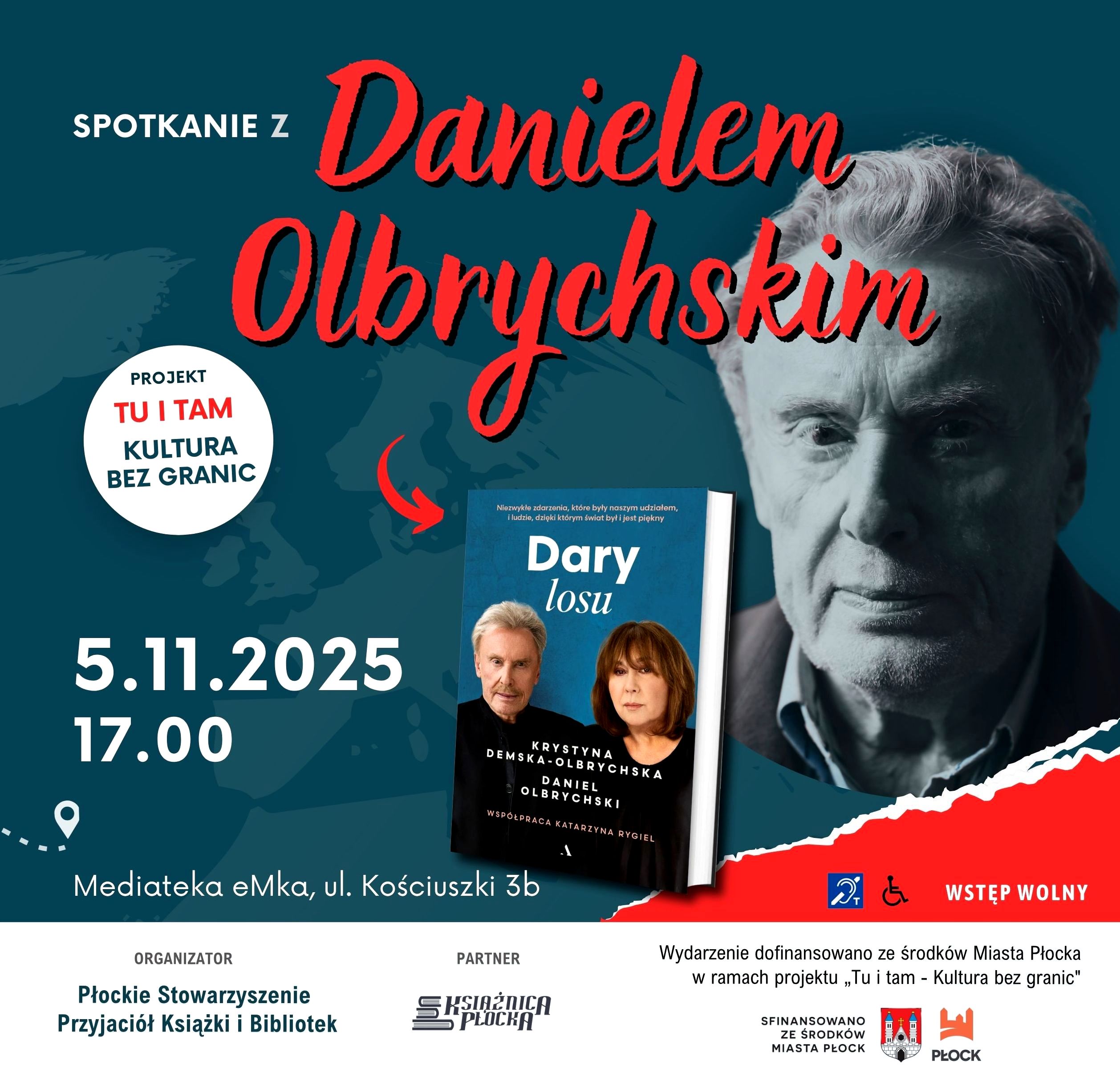 Z płocczanami Daniel Olbrychski spotka się w Mediatece w ramach projektu „Tu i tam – kultura bez granic” realizowanego przez PSPKiB w partnerstwie z Książnicą Płocką. Wstęp wolny, ale liczba miejsc ograniczona.