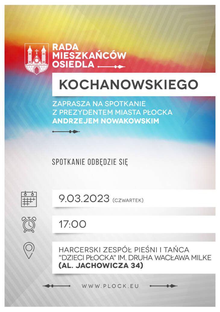 Rada Mieszkańców Osiedla Kochanowskiego zaprasza mieszkańców na spotkanie z prezydentem miasta Andrzejem Nowakowskim.