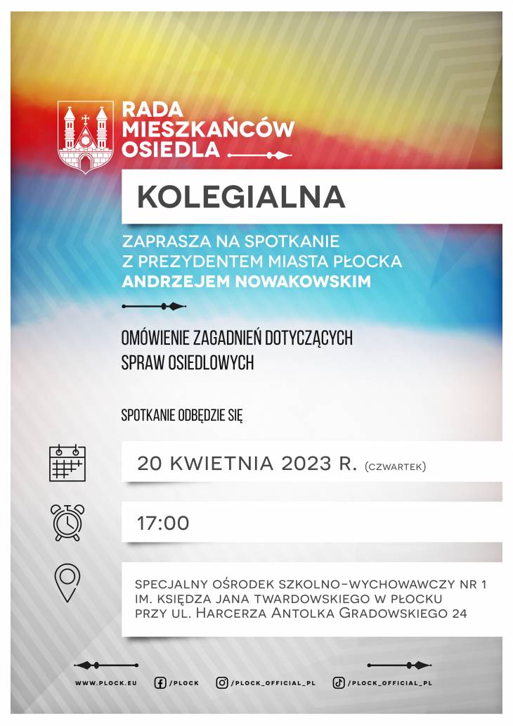 Rada Mieszkańców Osiedla Kolegialna zaprasza mieszkańców na spotkanie z prezydentem miasta Andrzejem Nowakowskim.