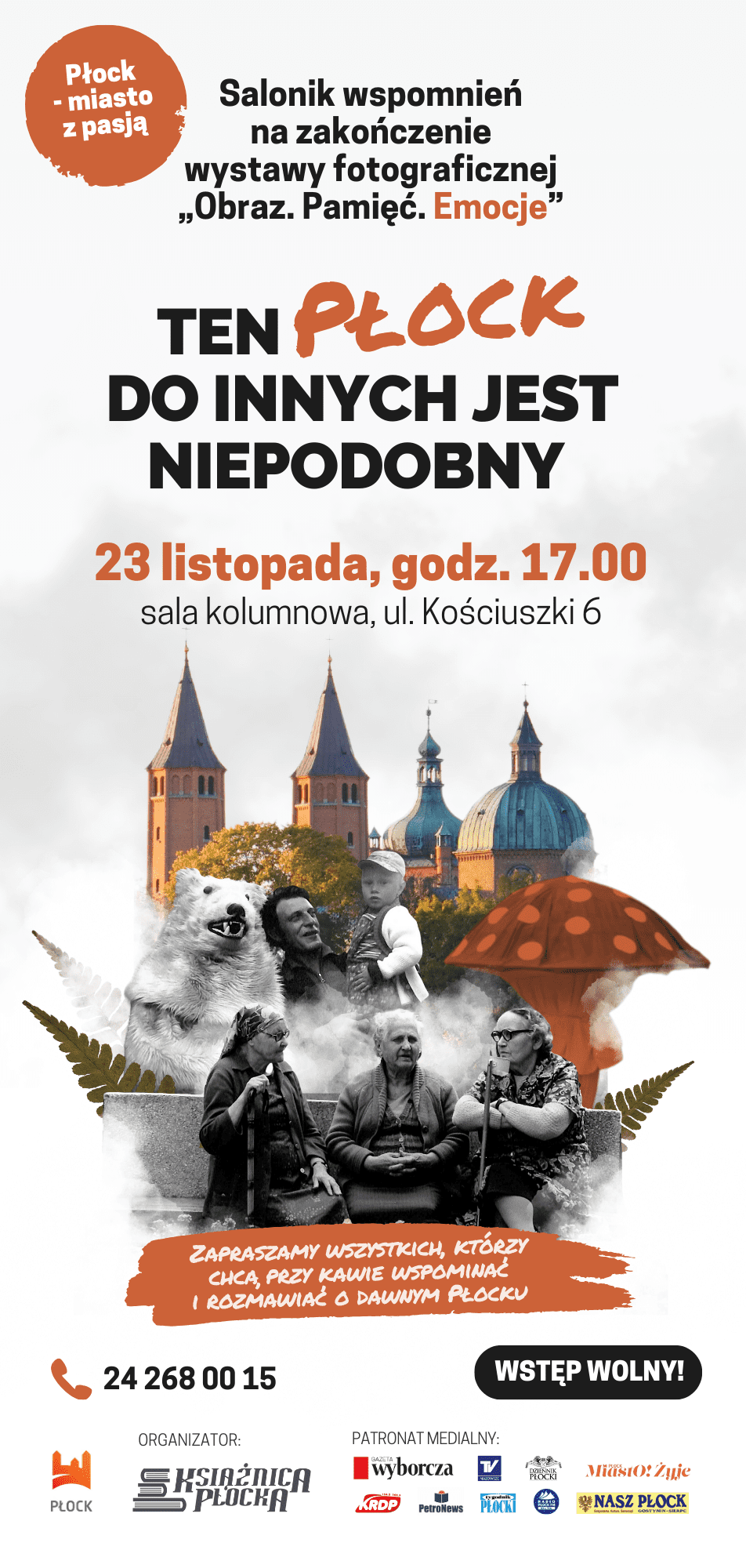 Będzie to salonik wspomnień wieńczący wystawę fotograficzną „Obraz. Pamięć. Emocje”. Otwarciu wystawy w sierpniu towarzyszył tłum płocczan, którzy chętnie dzielili się wtedy swoimi wrażeniami. Okazało się, że potrzebne będzie jeszcze jedno spotkanie, żeby powrócić do rozmów o dawnym Płocku. Niech ten „salonik wspomnień” jeszcze raz przywoła obrazy, emocje, uruchomi pamięć o tym, jak się żyło w Płocku przez ostatnie kilkadziesiąt lat. Wiele jeszcze zostało do opowiedzenia.