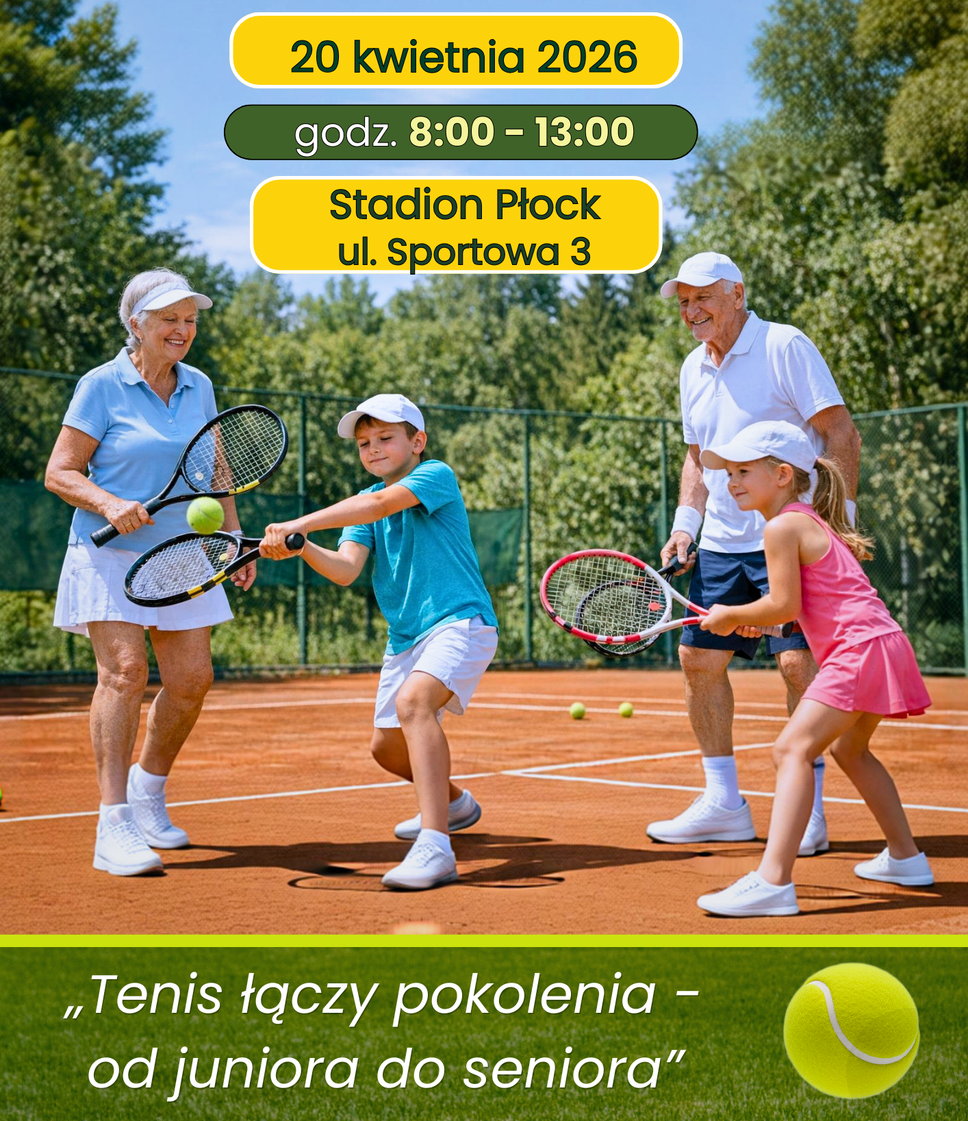 W poniedziałek 20 kwietnia w godzinach 8-13 na kortach stadionu miejskiego przy ul. Sportowej 3 rozegrany będzie turniej tenisowy „Tenis Łączy pokolenia – od juniora do seniora”.