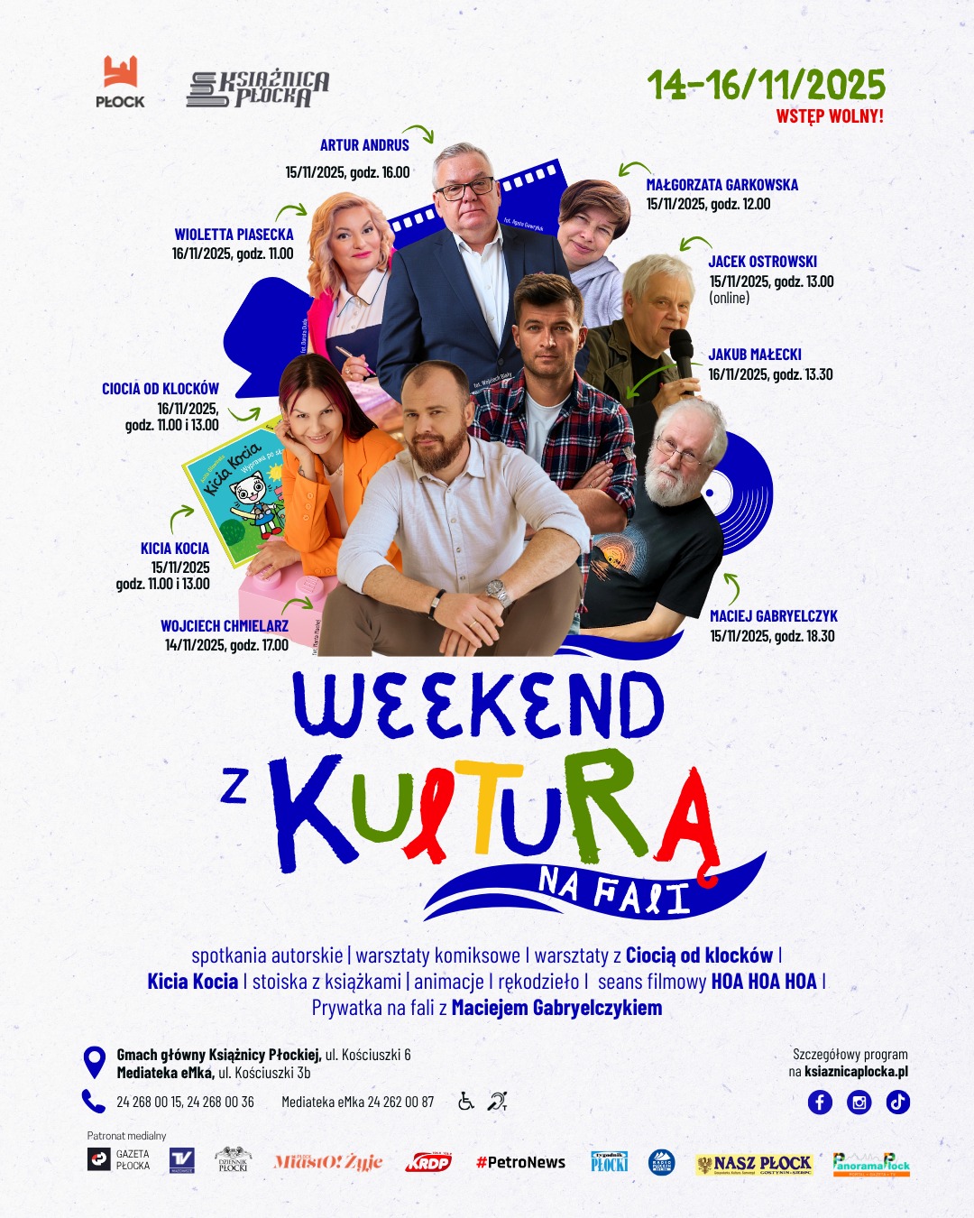 Zapraszamy do Książnicy Płockiej na wyjątkowe wydarzenie – Weekend z Kulturą na Fali, które odbędzie się od piątku 14 listopada do niedzieli 16 listopada. Wstęp na wszystkie spotkania wolny, obowiązują wcześniejsze zapisy.