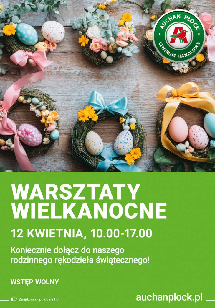 Wielkanoc zbliża się wielkimi krokami, czas rozpocząć świąteczne przygotowania. Tych, którzy lubią samodzielnie wykonywać dekoracje i chcą wprowadzić wiosenną atmosferę do swojego domu, CH Auchan Płock zaprasza na wielkanocne warsztaty kreatywne. Zajęcia odbędą się w sobotę 12 kwietnia od godziny 10.00 do godziny 17.00 w pasażu centrum handlowego. Wstęp wolny.