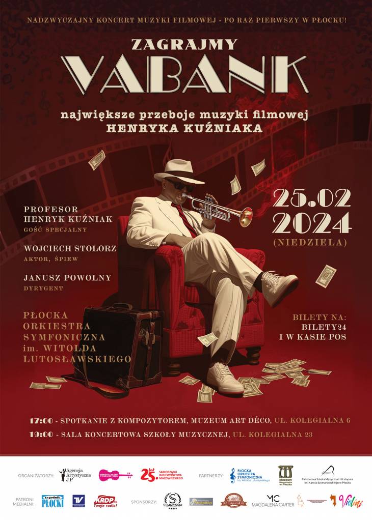 Wydarzenie, które odbędzie się 25 lutego, jest podzielone na dwie części. Pierwszą będzie rozmowa z kompozytorem. Organizatorka spotkania Patrycja Grecka zaprasza o godz. 17 do oddziału art deco Muzeum Mazowieckiego przy ul. Kolegialnej 6. Natomiast o godz. 19 rozpocznie się koncert galowy. Płocka Orkiestra Symfoniczna pod batutą maestro Janusza Powolnego wykona najsłynniejsze przeboje autorstwa Henryka Kuźniaka. W programie występu utwory z „Vabank”, „Vabank II”, „Seksmisji” i „Na kłopoty Bednarski”. Muzycy wystąpią w szkole muzycznej przy ul. Kolegialnej 23.