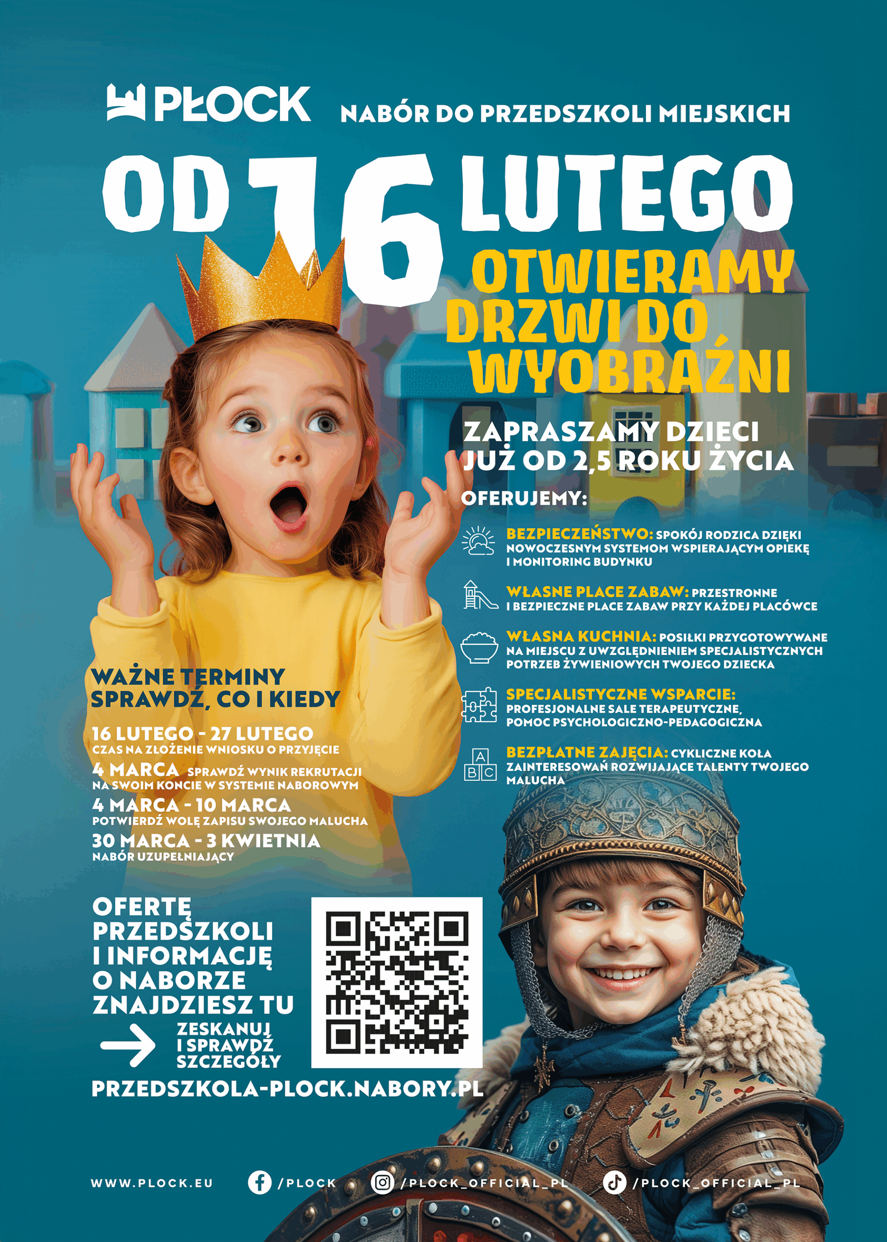 – Zapraszam do skorzystania z oferty naszych przedszkoli – mówi Łukasz Jankowski, zastępca prezydenta Płocka. – To doskonale wyposażone placówki, z przestronnymi i bezpiecznymi placami zabaw. Z nowoczesnymi kuchniami, w których przygotowywane są smaczne i wartościowe posiłki, uwzględniające specjalne potrzeby żywieniowe dzieci. A przede wszystkim z doświadczonymi, empatycznymi pracownikami, którzy każdego dnia dbają o rozwój i bezpieczeństwo swoich podopiecznych.