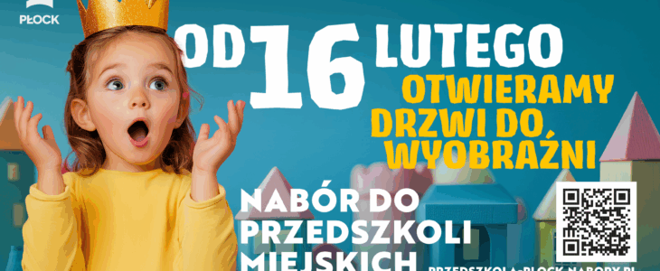 Już 16 lutego rozpoczyna się nabór do miejskich przedszkoli w Płocku. W tym roku po raz pierwszy udział w rekrutacji zasadniczej będą mogły wziąć także dzieci młodsze, dwuipółletnie.