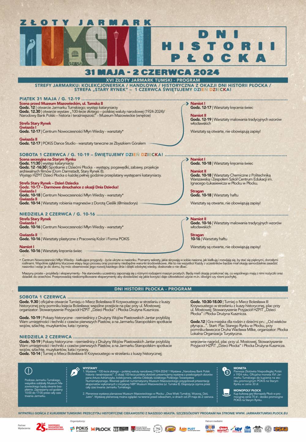 Już za cztery dni, w dniach od 31 maja do 2 czerwca ulice Starego Miasta ożyją atmosferą jarmarku i licznych historycznych atrakcji, bo staną się tłem dla XVI Złotego Jarmarku Tumskiego oraz Dni Historii Płocka. Tegoroczna edycja przypada w 100. rocznicę wprowadzenia złotego do obiegu oraz w rok Druha Wacława Milke. Teren jarmarku zostanie podzielony na: Strefę Kolekcjonerską, Handlową, Historyczną/Dni Historii Płocka oraz Stary Rynek. Kramy z przeróżnymi skarbami staną na Nowym Rynku, Tumskiej, Grodzkiej, Starym Rynku, a także na Placu Narutowicza.