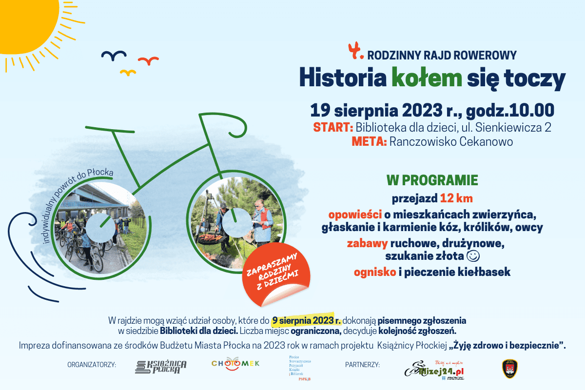 Książnica Płocka zaprasza na 4. Rodzinny Rajd Rowerowy „Historia kołem się toczy” – obowiązują zapisy do 9 sierpnia, a liczba miejsc jest ograniczona.