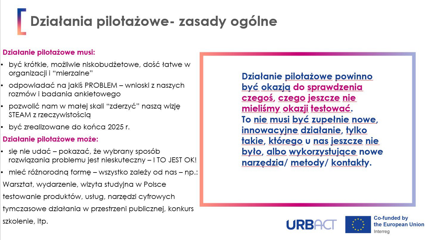 Wszystkie ww. działania planujemy WE WSPÓŁPRACY z różnymi lokalnymi podmiotami – więcej o naszej lokalnej grupie URBACT wyżej. Jeśli chcesz do nas dołączyć, skontaktuj się z koordynatorem projektu (informacje na górze strony).