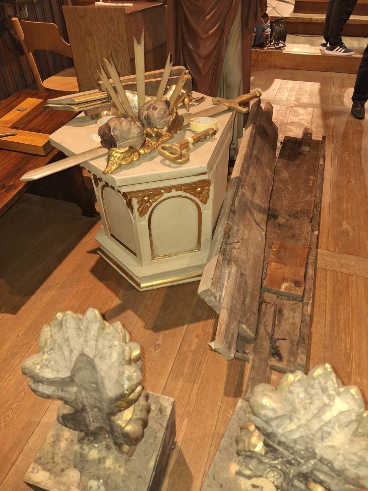 Wykonawca prac Pani Małgorzata Paździora – Sattler z ART STUDIO rozpoczęła prace związane z renowacją ołtarza głównego w kościele parafialnym pw. św. Aleksego w Płocku. Ołtarz został zdemontowany i przewieziony do pracowni celem przeprowadzenia specjalistycznych zabiegów konserwatorskich. Posłużą one do zabezpieczenia, zachowania i utrwalenia substancji zabytkowej, zahamowania procesów destrukcji oraz wyeksponowania walorów ołtarza.