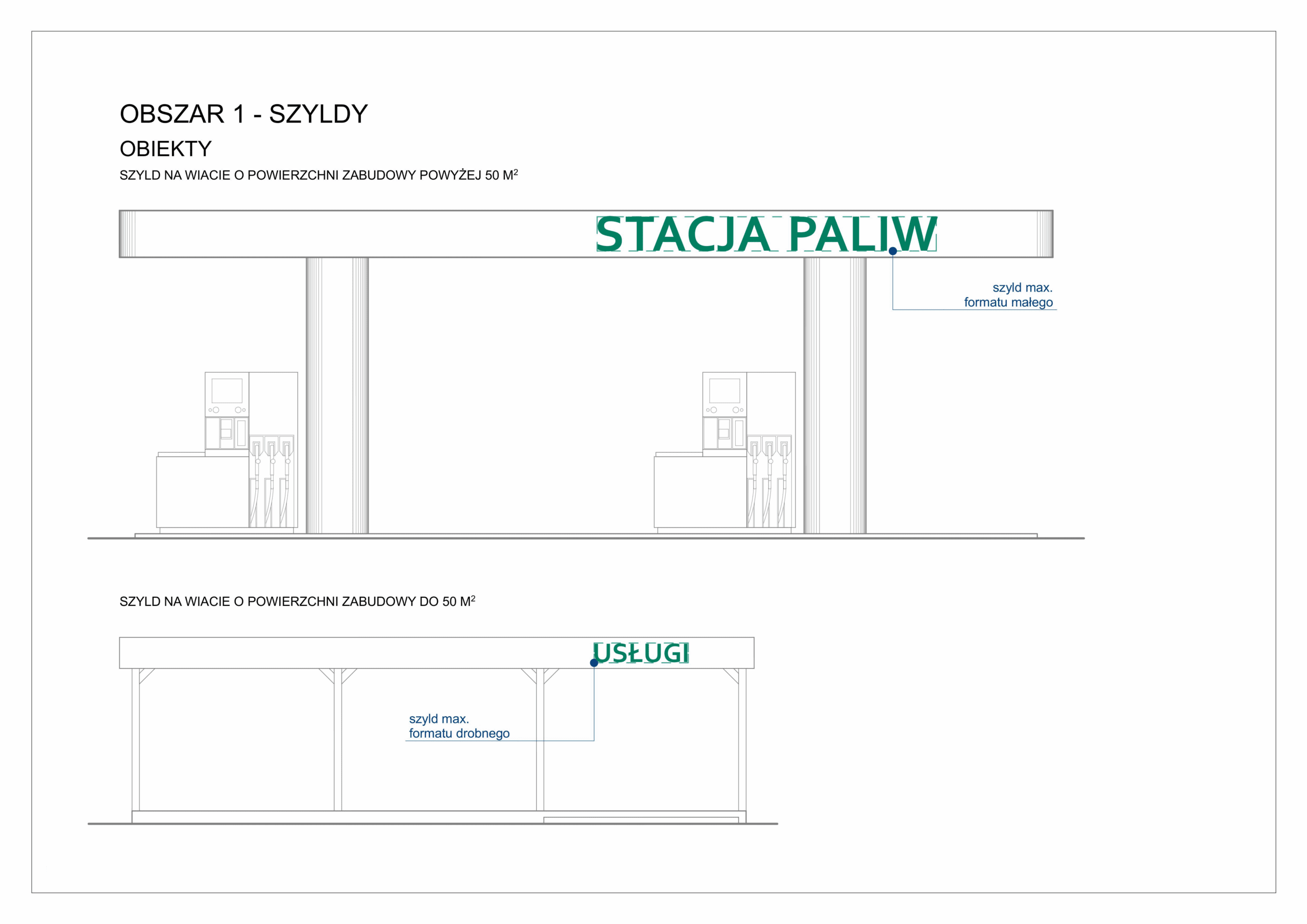 - nakazuje się montaż szyldu do attyki zadaszenia.